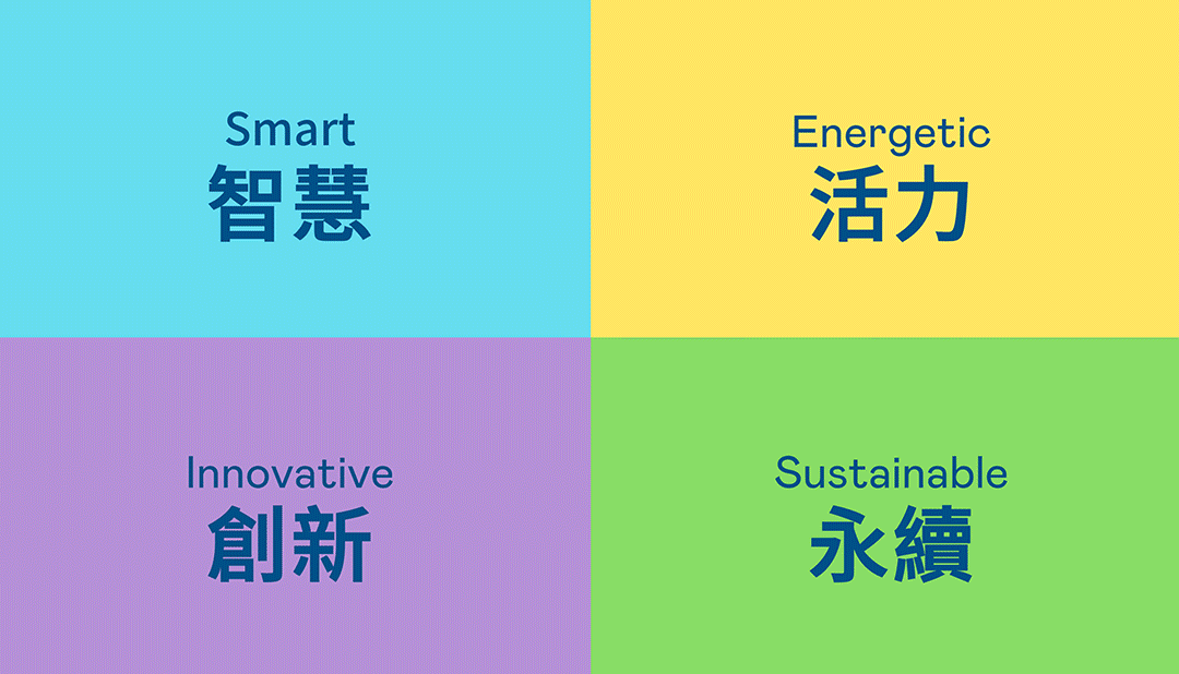 从稳重、、、、信赖的CG电子蓝开创新色彩,,,注入象征智慧蓝、、、、活力黄、、创新紫、、永续绿的品牌色及动态多变的几何图形,,,,呼应不设限的「Possibilities」精神,,,代表多元的专业技术及领域,,,在碰撞中相互触动、、融合、、、、延伸,,,,持续激荡出更多新的可能性。。。