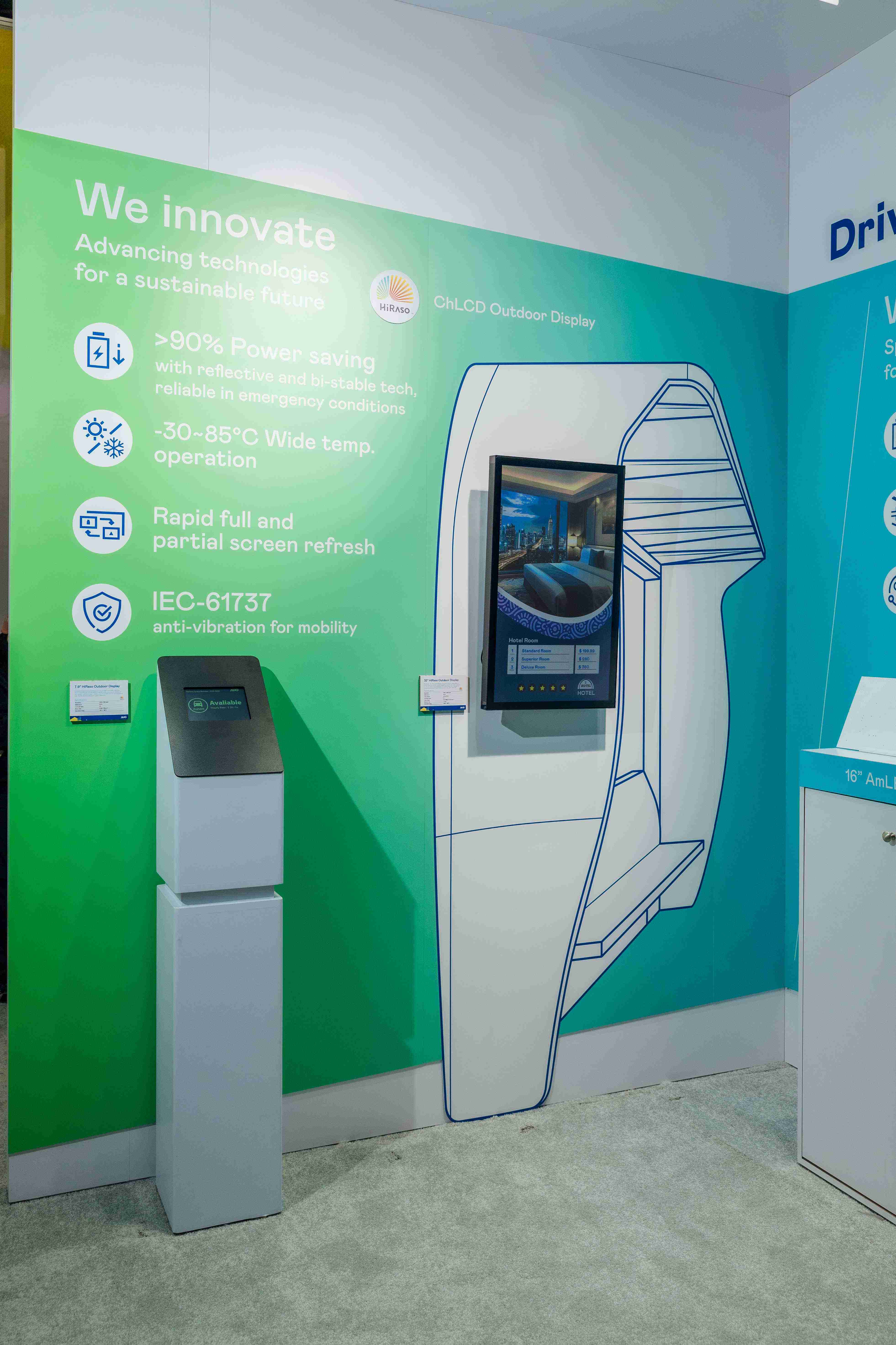 HiRaso胆固醇液晶显示器运用反射环境光线的方式,,呈现影像显示时零耗能的环保省电诉求,,光线愈强愈能呈现绝佳的色彩饱和度及显示效果,,,同时在摄氏-30度至85度间宽温的使用优势,,,,为户外电子看板的新首选。。。。